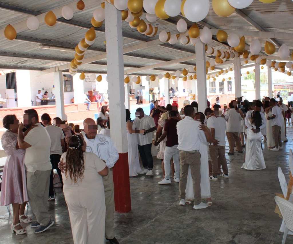 Ciudad Victoria, Tamaulipas.– Con base en el respeto a los derechos de las personas privadas de la libertad (PPLs) y en la estrategia de reinserción social, que tiene a las relaciones familiares entre sus ejes fundamentales, 21 parejas formalizaron su unión al interior del Centro de Ejecución de Sanciones (CEDES) de Ciudad Victoria.